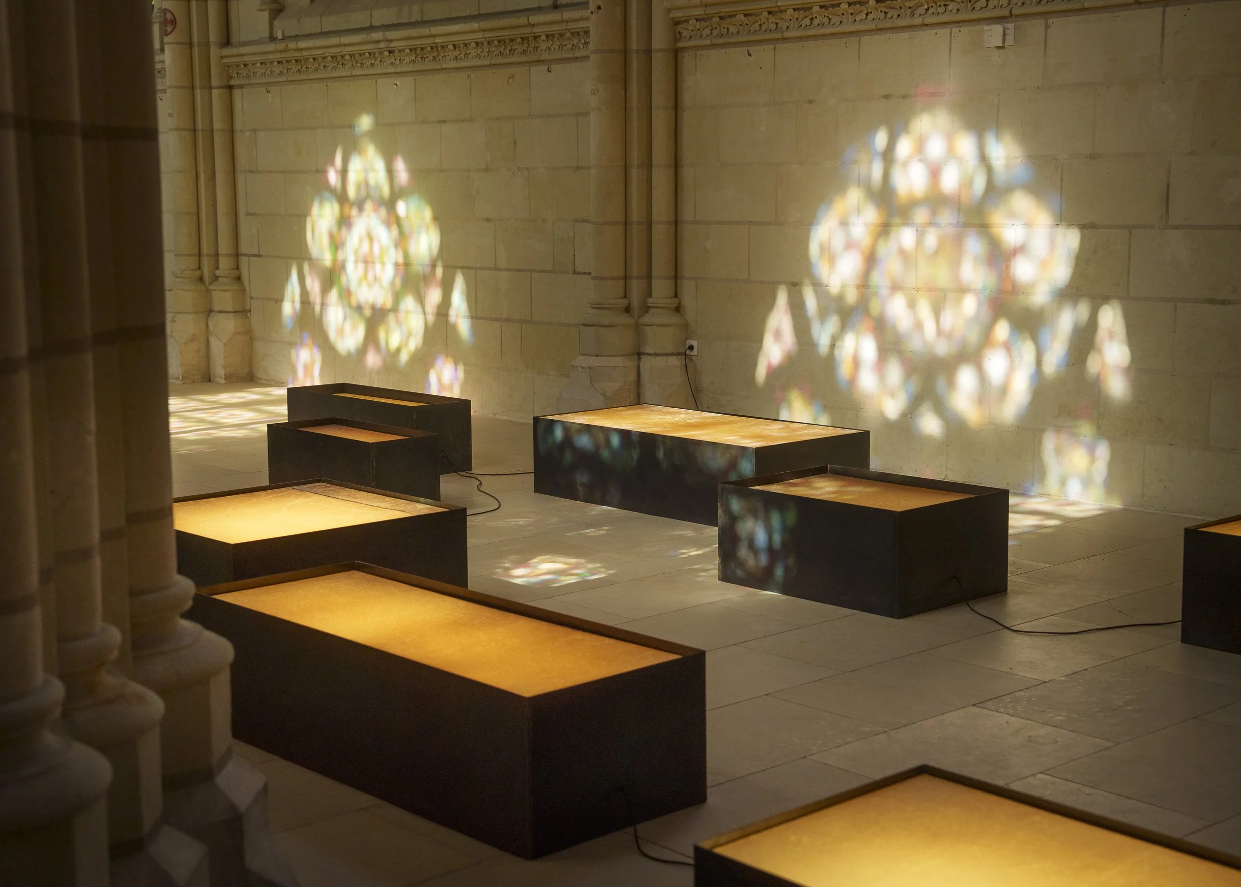 Perhaps here lies one of the keys to the enigma these scattered forms seem to carry — fragments subtly guided by the orthogonality of the chapel itself. Though different in nature, these materials and elements come together, giving rise to a sensation imbued with both the sacred and the secular. It is no mere metaphor to say that this feeling comes from afar. Elise Guillaume’s work bears the imprint of a residency in the Arctic, where the constant awareness of imminent danger lingers everywhere, quietly veiled by the beauty of the landscape — the shimmering of water, the cracking of ice, the song of distant birds...[…]